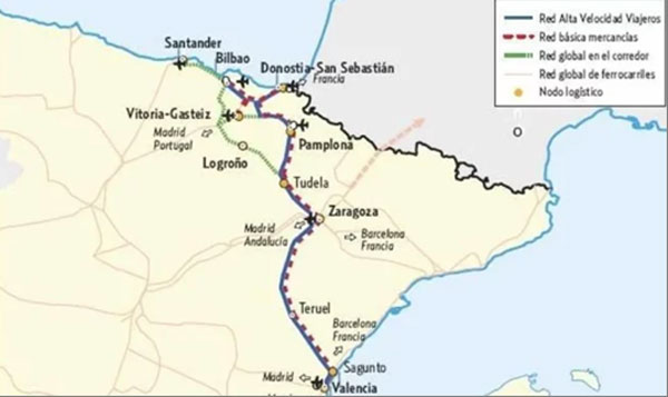 Este Corredor está integrado dentro de la red TEN-T y se concibe como una línea que conecta los más importantes nodos ferroviarios de la red del Noreste de la Península Ibérica, una importante área socio-económica en España, que concentra más de la cuarta parte de la población del país y representa más del 25% del PIB. Por este motivo, debido a la elevada presencia industrial y el hecho de contar esos seis puertos de importancia internacional (Valencia, Sagunto, Castellón, Bilbao, Pasajes y Santander), el potencial de tráfico por ferrocarril en este Corredor ferroviario es muy elevado.