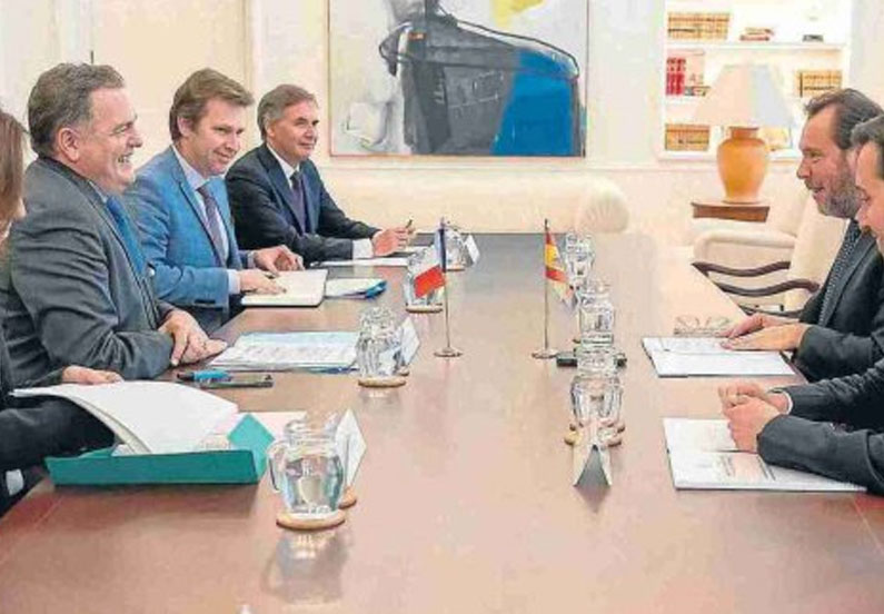 El ministro de Transportes y Movilidad Sostenible del Gobierno de España, Oscar Puente y el ministro de Transporte de Francia Philippe Tabarot se reunieron en Madrid en su primera reunión oficial para abordar cuestiones pendientes en materia de comunicaciones transfronterizas a través de las conexiones del Atlántico y el Mediterráneo, la reapertura de la línea de Canfranc y la Travesía Central del Pirineo (TCP).