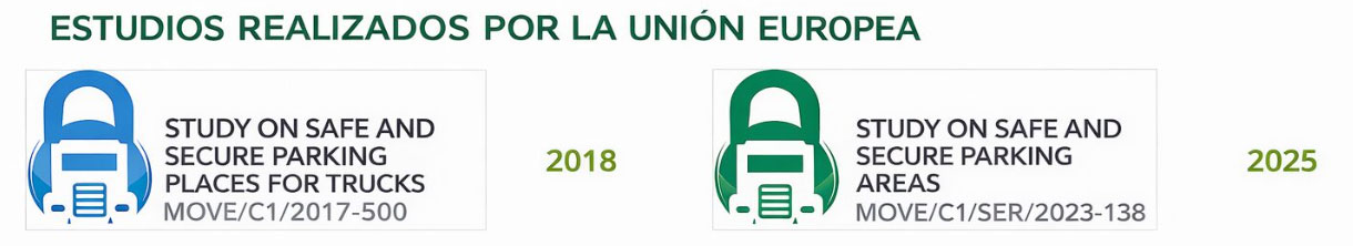 La Unión Europea ha promovido dos estudios, uno finalizado en diciembre de 2018 y otro de este mismo año 2025. Asimismo, en 2019 creó un Grupo de Expertos en Áreas de Estacionamiento Seguras y Protegidas para Camiones para ayudar a la Comisión en su implementación, así como en la definición de sus especificaciones técnicas.